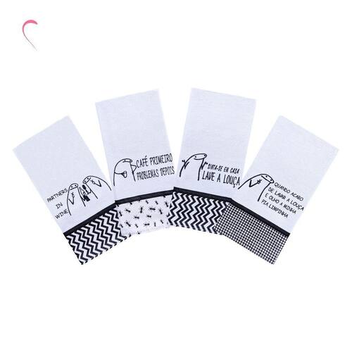 Contém: 04 panos de prato 48 cm x 68 cm Composição: 100% Algodão Acabamento: overloque Diferencial: bordado do Meme Bento Florks