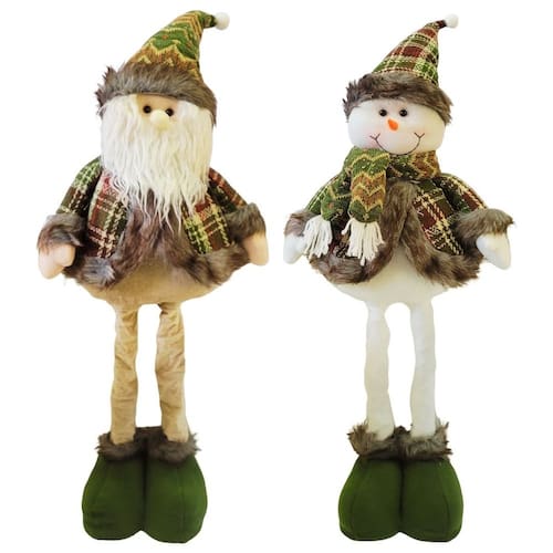 Jogo Papai Noel e Boneco de Neve Decorativos em Pelúcia – Pernas Retráteis 55cm a 75cm