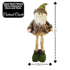 Transforme sua decoração natalina com este conjunto premium de Papai Noel e Boneco de Neve em pelúcia verde xadrez, ambos com o inovador sistema retrátil extensível que permite ajustar a altura de 55cm até 75cm. As pernas podem ser encolhidas ou esticadas, trazendo movimento, versatilidade e charme para composições natalinas diferenciadas.