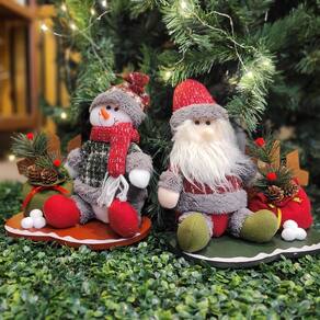 Adicione um toque de charme rústico à sua decoração natalina com este Jogo Papai Noel e Boneco de Neve decorativo. Com 34 cm de altura, ele está elegantemente vestido em pelúcia vinho com detalhes xadrez e cinza, em um estilo acolhedor e tradicional. Posicionado sobre uma base de madeira, este Papai Noel e Bone de Neve vem acompanhado de um saco de presentes adornado com pinhas naturais e picks festivos. Perfeito para mesas, prateleiras ou para criar um cenário natalino encantador em qualquer ambiente.