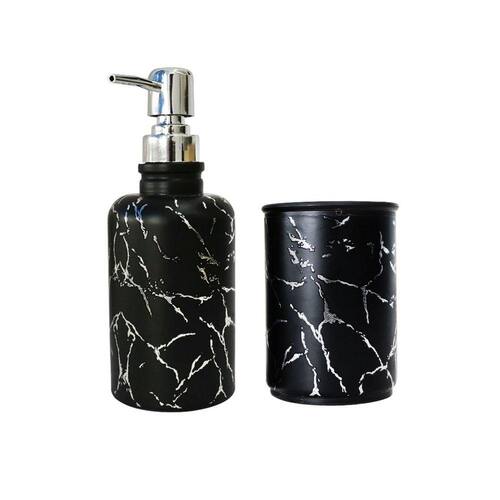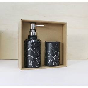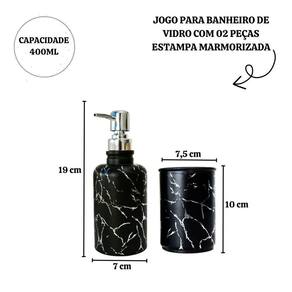 JOGO PARA BANHEIRO DE VIDRO COM 02 PEÇAS ESTAMPA MARMORIZADA - SXYZ5108.