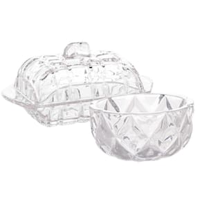 Composição: Começando pela esquerda; 01 Porta Talher de Cristal 10,5x13cm, 02 Açucareiros com 250ml cada, 01 Mantegueira, 01 Jarra ou Cremeira de Cristal com 340ml, 01 Bowl de Cristal 11x5cm, 01 Porta Sache. 01 Porta Guardanapo. Observação: Todos os itens são de Cristal.