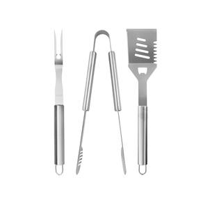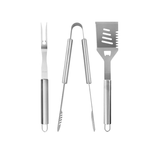 Jogo Para Churrasco Bbq 3 Peças Oster é perfeito para os momentos de confraternização em família. Composto por 3 ferramentas essenciais feitas em aço inoxidável resistente, inclui um garfo de carne, um pegador de carnes e uma espátula. Possui design elegante na cor prata, da linha Baldwyn da Oster. Fácil de limpar, pode ser lavado à mão ou na lava-louças.