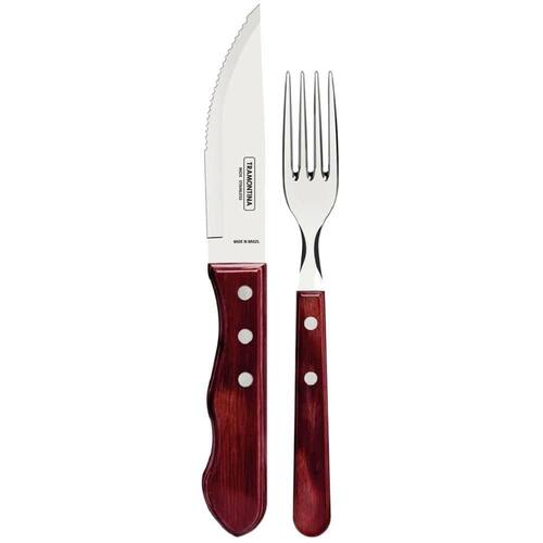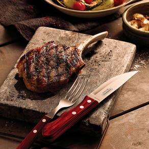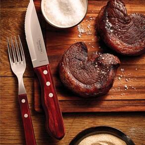 Informações Gerais: - Lâminas de aço inox. - As lâminas das facas têm maior durabilidade do fio devido ao tratamento térmico. - As lâminas dos garfos contam com maior espessura e uma estampagem do aço que garante maior resistência, evitando deformações. - Os cabos de madeira tratada Polywood são resistentes à impactos e alta temperaturas garantindo maior resistência e durabilidade. - Rebites de alumínio. - Podem ir à máquina de lavar louças facilitando seu dia a dia.
