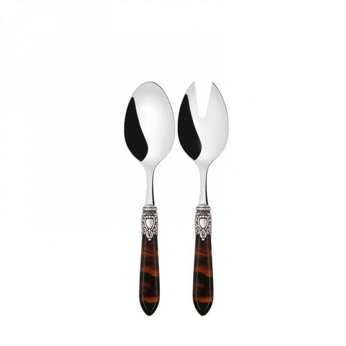 Para garantir uma mesa elegante e com espírito régio o jogo de 2 peças para salada da linha Oxford da Bugatti foi produzido em aço inox 18/10, com cabo de madrepérolaem acrílico enriquecido por um sofisticado anel com acabamento em prata antiga que lembra um nobre brasão.