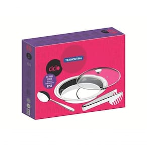 Jogo Para Servir Tramontina Ciclo Aço Inox Com Tampa De Vidro 3 Peças Servir bem é um verdadeiro presente para o dia-a-dia. Travessas, baixelas e saladeiras recebem, com bom gosto e beleza, os pequenos prazeres da culinária. é a Tramontina cuidando de todos os detalhes para que as refeições sejam sempre únicas. Recomendações de Uso: Antes do uso: Antes de utilizar o , remova as eventuais etiquetas e lave-o com água quente e de uso: Durante a lavagem use somente esponja macia, outros tipos de produtos, como palha de aço, poderão riscar ou prejudicar o brilho do produto. Enxágue bem a peça a fim de remover totalmente os resíduos dos produtos de limpeza, que por serem abrasivos, podem danificar o inox. Após a lavagem enxugue-o, pois as substâncias químicas contidas na água poderão causar manchas. Sempre que possível use água quente, pois renova o brilho do produto. Evite o da peça com superfícies quentes, pois podem provocar a descoloração do produto. Quando usar a máquina de lavar louça, recomendamos retirar o produto logo que tenha terminado o ciclo enxaguar, a fim de que o mesmo seja secado manualmente.- Foto meramente ilustrativa.- Embalagem litografada. Informações Adicionais: