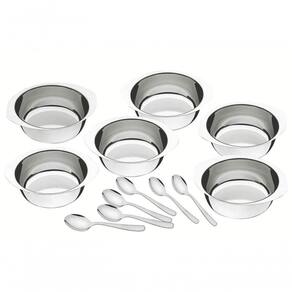 Jogo Para Sobremesa Tramontina Service Aço Inox 12 Peças Servir bem é um verdadeiro presente para o dia-a-dia. Travessas, baixelas e saladeiras recebem, com bom gosto e beleza, os pequenos prazeres da culinária. é a Tramontina cuidando de todos os detalhes para que as refeições sejam sempre únicas. Recomendações de Uso: Antes do uso: Antes de utilizar o , remova as eventuais etiquetas e lave-o com água quente e de uso: Durante a lavagem use somente esponja macia, outros tipos de produtos, como palha de aço, poderão riscar ou prejudicar o brilho do produto. Enxágue bem a peça a fim de remover totalmente os resíduos dos produtos de limpeza, que por serem abrasivos, podem danificar o inox. Após a lavagem enxugue-o, pois as substâncias químicas contidas na água poderão causar manchas. Sempre que possível use água quente, pois renova o brilho do produto. Evite o da peça com superfícies quentes, pois podem provocar a descoloração do produto. Quando usar a máquina de lavar louça, recomendamos retirar o produto logo que tenha terminado o ciclo enxaguar, a fim de que o mesmo seja secado manualmente.- Foto meramente ilustrativa- Embalagem litografada Informações Adicionais: