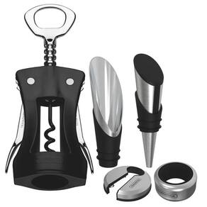Jogo para Vinhos Tramontina Harmoniza Aço Inox Preto Saca Rolhas Tampa Corta Gotas.