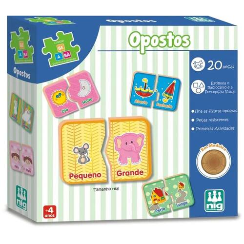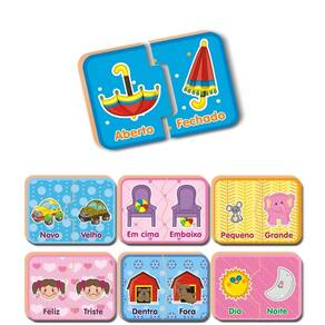 Feliz e Triste, Novo e Velho. Com esse jogo pedagógico a criança vai observar as figuras e associar os opostos.