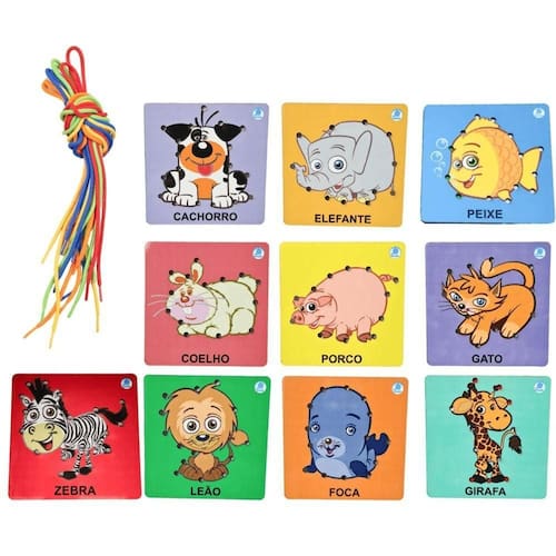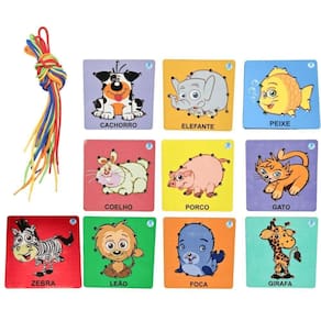Jogo Pedagógico Alinhavos Animais - Simque Estimule a criatividade e a coordenação motora das crianças com o Alinhavos - Animais da Simque! Com peças coloridas e em formato de animais, este brinquedo educativo é ideal para desenvolver habilidades manuais e concentração de forma divertida. Recomendado para crianças a partir de 4 anos, proporciona aprendizado lúdico e momentos de pura diversão. Código: 106030 Dimensões aprox. da embalagem em cm: 5x16x18 Peso liq. Aproximado do produto na embalagem: 576g Referência do Modelo: 665 Certificado Inmetro: 009 515/2022 Conteúdo da Embalagem: 10 Peças Composição/material: Madeira Idade recomendada: a partir de 4 anos Garantia: 90 dias contra defeitos de fabricação pelo fabricante Gênero - Meninas Meninos Unissex Idade - 4 anos 5 anos 6 anos 7 anos 8 Anos 9 anos 10 Anos Tipo - Puzzle Quantidade de Peças - Até 30 Peças