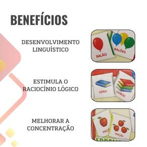Encante crianças a partir de 3 anos com esse jogo lúdico e educativo, que promove o aprendizado do plural de forma interativa e envolvente. Composto por 48 peças em MDF de alta qualidade, este produto estimula o desenvolvimento cognitivo e linguístico dos pequenos enquanto se divertem.