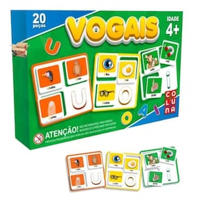 que tal estimular a inteligência das crianças com um jogo pedagógico O vogais é exatamente isso um divertido jogo de cartas que auxilia as crianças na aprendizagem das vogais e palavras. Os cards são coloridos com imagens e palavras representativas, tornando o aprendizado ainda mais divertido. Contem 20 pçs coloridas. Indicado para acima de 4 anos.