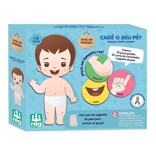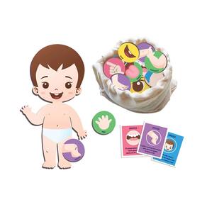 Jogo pedagógico para ensinar a criança a reconhecer as principais partes do corpo e nomeá-las.