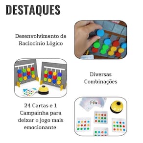 Estimule o raciocínio lógico e a concentração das crianças de forma divertida e educativa com o Jogo Pedagógico Logic Color com Campainha da Paki Toys.