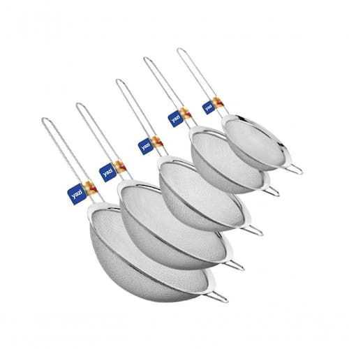 As Peneiras em Aço Inox da Yazi são ideais para uso no dia a dia, lançamento exclusivo, além de beleza, representa qualidade, seu aro facilita a utilização e sua tela é resistente. Uma peça prática, ideal para sua cozinha fabricada em aço inoxidável, é altamente durável e não solta nenhum resíduo nos alimentos, conservando-os saudáveis! Kit Exclusivo possui 5 tamanhos: Incluso:-01 Peneira Aço Inox PP 10cm - Yazi-01 Peneira Aço Inox P 14cm - Yazi-01 Peneira Aço Inox M 16cm - Yazi-01 Peneira Aço Inox G 18cm - Yazi-01 Peneira Aço Inox GG 20cm - Yazi Material: 100% Aço inoxidávelValidade: indeterminadaMarca: Yazi