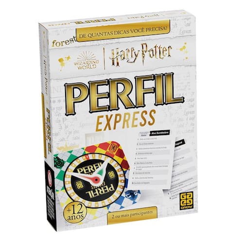 Com o Perfil Express Harry Potter, você vai poder testar seus conhecimentos em quatro categorias inspiradas nos filmes que encantaram fãs do mundo todo. Cada cartela possui 10 dicas que valem até 10 pontos cada, sendo as primeiras dicas menos “revelio”, e as seguintes, com mais chances de acerto. Esta versão possui um marcador exclusivo e foi desenvolvida para duas pessoas ou duas equipes jogarem. O grande vencedor será aquele que acumular mais pontos ao longo de cinco emocionantes rodadas. Desafie seus amigos e familiares que amam a saga Harry Potter para uma competição cheia de magia e diversão!