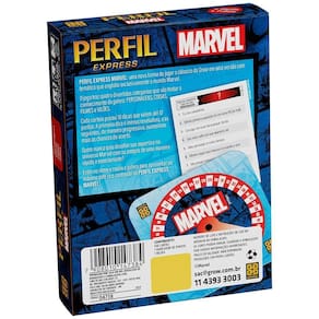 Perfil express marvel: uma nova forma de jogar o clássico da grow em uma versão com temática que engloba exclusivamente o mundo marvel.O jogo traz quatro divertidas categorias que vão testar o conhecimento do pessoal: personagens, coisas, filmes e vilões.Cada cartela possui 10 dicas que valem até 10 pontos. A primeira dica é menos reveladora, e as seguintes, de maneira progressiva, aumentam mais as chances de acerto.Quem nunca quis desafiar sua expertise no universo marvel com os amigos de maneira rápida e emocionanteEntre no ritmo e reúna a galera para aproveitar ao máximo este rico conteúdo do perfil express marvel Homologação Inmetro: CE-BRI/ICEPEX-N 01264-25-16