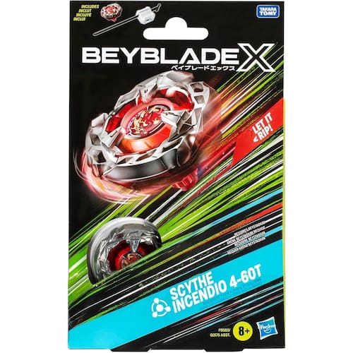 Beyblade X - Pião Scythe Incendio 4-60t da Hasbro Este Kit Inicial Beyblade X Inclui 1 Pião Scythe Incendio 4-60t Tipo Equilíbrio e Giro à Direita e 1 Lançador (requer Arena Beystadium Required, Vendida Separadamente) Entrar Direto Na Batalha ou Personalizar As Camadas Intercambiáveis da Lâmina, Engrenagem e Ponta com Outros Piões Beyblade X (vendidos Separadamente) o Beyblade X Traz o Sistema de Engrenagem X-Celerator Para Elevar a Batalha Quando As Engrenagens do Pião Beyblade X Encontram a Guia da Arena Beystadium, Os Piões São Lançados com Um Avanço Xtreme e Alcançam Velocidades Surpreendentes Que Geram Eclosões Incríveis e Impactos Colossais Os Fãs Lançam Os Seus Piões em Batalhas Selvagens Contra Os Seus Oponentes o Primeiro a Marcar 4 Pontos É o Vencedor