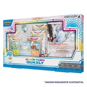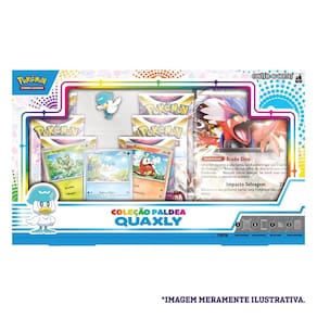 Comece uma nova jornada com quaxly e seus amigos Prepare-se para uma aventura totalmente nova na região de paldea com o pokémon estampas ilustradas Os parceiros iniciais sprigatito, fuecoco e quaxly juntam-se à sua coleção como cartas holográficas promocionais, e o broche brilhante de quaxly permite que você exiba o pokémon patinho onde quer que você vá. Descubra muito mais com incríveis pacotes de booster e uma carta extragrande de um dos pokémon lendários, koraidon ou miraidon, como um poderoso pokémon ex Esta coleção paldea do pokémon estampas ilustradas contém: - 3 cartas holográficas promocionais de sprigatito, fuecoco e quaxly - 1 carta holográfica extragrande de koraidon ex ou miraidon ex - 1 broche de colecionador de quaxly - 6 pacotes de booster do pokémon estampas ilustradas - 1 carta codificada para o pokémon estampas ilustradas live. - contém 39 unidades de cartas no formato 63mm x 88mm e 1 unidades de carta no formato 133mm x 187mm.. - registro 008140/2021