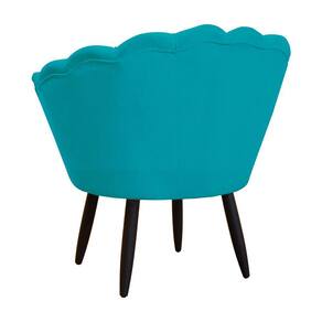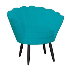 Jogo Poltrona Estofada Com 1 Puff Pés Palito Clínica Pétala Suede Azul Turquesa - LM DECOR
