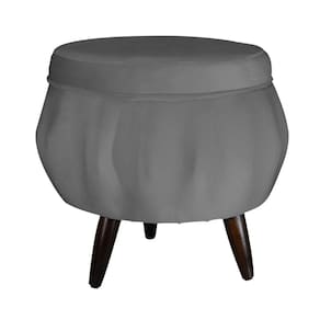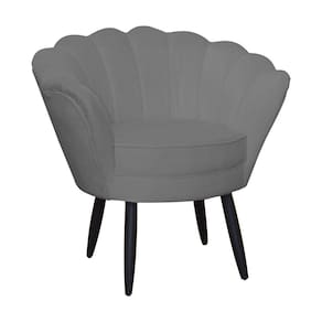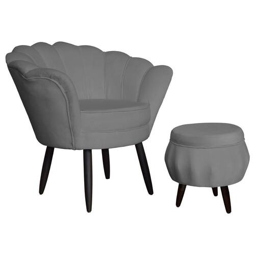 Jogo Poltrona Estofada Com 1 Puff Pés Palito Clínica Pétala Suede Cinza - LM DECOR