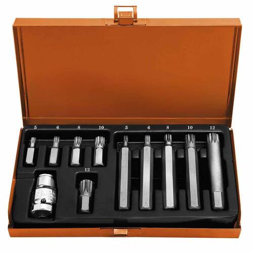 Corpo das ponteiras em aço ferramenta s2 temperado. Adaptador forjado em aço cromo vanádio. Acompanha: - 05 ponteiras ponta multidentada - longas: m5, m6, m8, m10 e m12. - 05 ponteiras ponta multidentada - curtas: m5, m6, m8, m10 e m12 adaptador de 1/2.