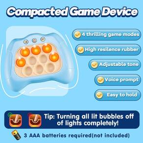 -?Máquina de jogo Pop Fidget multifuncional?Prepare-se para horas intermináveis de diversão com este brinquedo pop fidget multifuncional Webay! Com quatro modos de jogo emocionantes, incluindo desafios para um jogador e confrontos multijogador, este brinquedo portátil é perfeito para jogadores de todas as idades. Basta instalar três pilhas AAA e ajustar o volume ao seu gosto, depois começar o jogo!