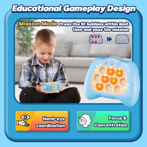 -?Diferentes modos de jogo?Procurando uma maneira divertida de passar o tempo? Confira o brinquedo Webay pop fidget! Projetada para iluminar e engajar os jogadores, esta máquina de jogo rápido é essencial para quem procura um jogo de agitação cativante. Com recursos como modos multijogador, cronômetros e desafios de memória, esse brinquedo tem algo a oferecer para todos. Além disso, ele vem com um botão de amortecimento de som para que você possa tocar sem incomodar os outros.