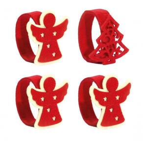 04 Unidades Anel Porta Guardanapo Tecido Feltro Anjo Vermelho com Árvore Pinheiro Vermelho - Magizi