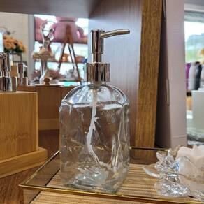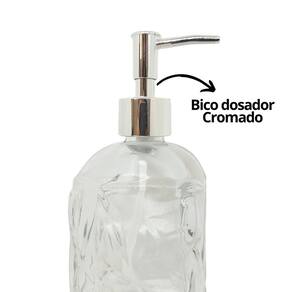 Porta Sabonete Líquido em vidro texturizado transparente modelo Clear Geométrico, com capacidade de 500ml, ideal para sabonetes líquidos, hidratantes ou álcool em gel. Seu design clean e texturizado proporciona um toque moderno e refinado à bancada.