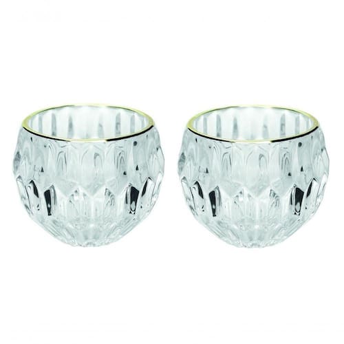 Jogo exclusivo modelo em vidro facetado redondo com borda dourada 2 unidades!
