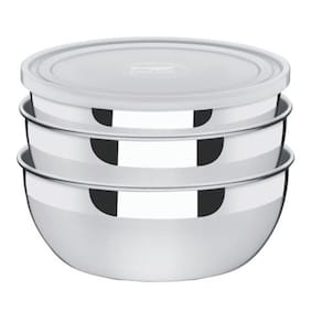 Descrição: - em aço inoxidável, altamente durável, mantém as características , reservando a beleza, a higiene e a durabilidade do material. - seu desenho limpo e sem cantos torna a limpeza muito mais fácil. - acabamento fosco com detalhes em brilho deixa o produto mais nobre. - a tampa possui vedação perfeita para a boa conservação dos alimentos. - ideal para preparar e armazenar os alimentos, pode ir à geladeira ou ao freezer. - pode ser lavado diariamente na máquina de lavar louças. Conteúdo 01 un - pote redondo aço inox com tampa plástica ø 18cm 1,61l 01 un - pote redondo aço inox com tampa plástica ø 20cm 2,19l 01 un - pote redondo aço inox com tampa plástica ø 22cm 2,90l orientações gerais use apenas sabão ou detergente e uma esponja macia. Outros tipos de produto como palha de aço, poderão riscar ou prejudicar o brilho da peça. Enxágue cada item a fim de remover totalmente os resíduos dos produtos de limpeza, que, por serem abrasivos, podem danificar o inox. Sempre que possível, use água quente, pois renova o brilho da peça. Após a lavagem, enxugue imediatamente a peça, caso contrário, as substâncias químicas da água cloro poderão causar manchas. Evite atrito entre as peças durante o processo de lavagem e no armazenamento, para mantê-la sem riscos. Evite o contato do produto com superfícies quentes, pois elas provocam a descoloração do material. Não guarde a peça em locais úmidos. A umidade também provoca manchas. Benefícios do produto material: pote aço inox com tampa plástica. Tr64220/210