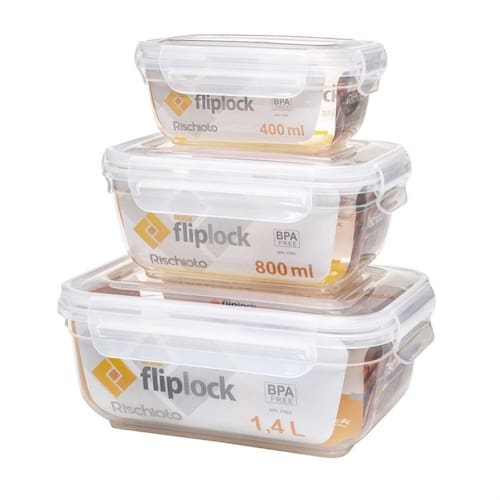 Jogo potes para alimento retangular fliplock 400/800/1400 ml