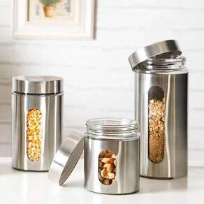 Buscando 03 Itens elegantes e modernos para compor sua cozinha Com um design minimalista e imponente o Conjunto de Potes para Mantimentos em aço inox é ideal Para compor sua cozinha pois combina com qualquer ambiente, do rústico ao moderno fazendo com que essas peças sejam de extrema versatilidade no quesito decoração. Com Três tamanhos diferentes para diferentes mantimentos o conjunto mantém também a sua versatilidade no quesito utilização, o pote Maior possui 1750ml de Volume com um tamanho de 10cm x 31cm, o mediano possuí 940ml de volume tamanho de 10cm x 17cm, já o pequeno possuí 635ml de volume e um tamanho de 10cm x 12cm, ou seja, apresentam um tamanho adequado para os diversos tipos de mantimentos. Com o Corpo em Aço Inox e Vidro o Pote é extremamente resistente e fácil de higienizar fazendo com que o produto dure muito mais. Especificações Técnicas: - Alta Qualidade; - Corpo em Vidro e Aço Inox; - Ótima Vedação; - Elegante e Prático; - Ideal para armazenar diversos alimentos; - Robusto; - 03 Tamanhos Diferentes; Dimensões da Embalagem: Comprimento: 21cm; Largura: 11cm; Altura: 21cm; Peso: 2550g; Conteúdo da Embalagem: - 03 Potes 01 Pote P 635ml-10cm x 12cm 01 Pote M 940ml-10cm x 17cm 01 Pote G 1750ml-10cm x 31cm