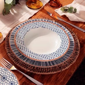 Seu design é folk, uma mistura do hippie com o rústico, e traz trabalhos artesanais, tons terrosos e cores marcantes. Com muita criatividade, equilíbrio e harmonia, esse prato é perfeito para quem busca uma mesa acolhedora e autêntica. A coleção faz parte do Tramontina Estilo Japandi, combinando elementos do estilo escandinavo com a simplicidade japonesa.