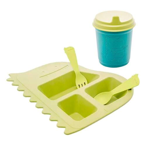 Jogo Prato Infantil Divisórias com Copo e Talheres Dino Baby Fibra de Bambu PP Lyor
