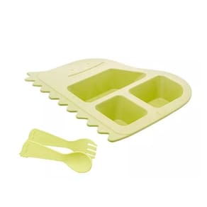 Jogo Prato Infantil Divisórias com Talheres Dino Baby Fibra de Bambu PP Lyor