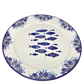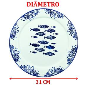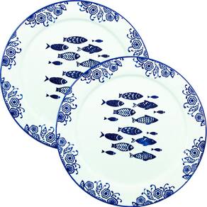 Jogo Prato Raso Jantar 10 Pessoas 10Pçs Peixe Mar Praia 31cm -