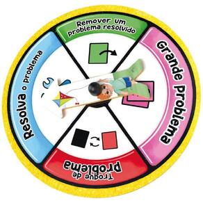 Contém: 33 Cartas dupla face (problemas e problemas solucionados), 1 Roleta, 3 Cartelas (tabuleiros do jogo), 3 Medalhas, 33 Fichas (soluções), 30 Cartas (grande problema), 1 Troféu, 1 Base plástica e 1 Manual de Instruções.