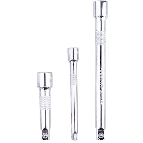 Extensores para soquete com encaixe de 1/2" (12,7mm).• Jogo com 3 extensores com comprimentos: 3" (76mm), 5" (127mm) e 8" (203mm).• Corpo em aço cromo vanadio.Indicado para estender o alcance do soquete na fixação de porcas e parafusos.Embalagem: Cartela Blister DuploRef.: 3000222Marca: Starfer