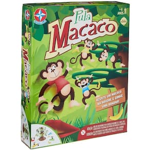 Jogo Pula Macaco - Estrela Os macaquinhos adoram ficar de galho em galho. Porém, não é fácil subir na árvore, eles vão precisar da sua ajuda para agarrar nos galhos. Com isso eles vão retribuir com bananas, quanto mais banana, mais chances de ganhar. Código: 021789 Dimensões aprox. da embalagem em cm: 40x10x30 Peso liq. Aproximado do produto na embalagem: 356g Referência do Modelo: 1001607100026 Certificado Inmetro: Sim Conteúdo da Embalagem: 1 tronco, 2 copas, 4 lanças-macacos, 16 macaquinhos, 16 bananas de cartão e folha de adesivos. Composição/material: Plástico, papel adesivo Idade recomendada: a partir de 4 anos Garantia: 90 dias contra defeitos de fabricação pelo fabricante Imagens meramente ilustrativas. As cores e tonalidades podem variar. Gênero - Meninas Meninos Unissex Idade - 4 anos 5 anos 6 anos 7 anos Tipo - Estratégia Habilidade Ean: 7896027548792