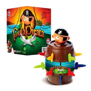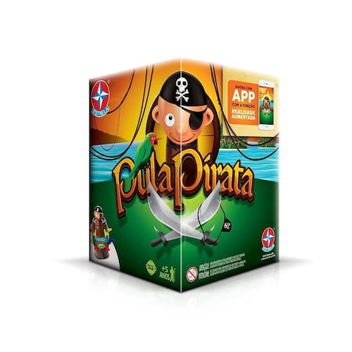 Jogo Pula Pirata Estrela Jogo Pula Pirata com Realidade Aumentada da Estrela Uma espadinha aqui... Outra ali... De repente o pirata pula fora do barril Espete o barril com cuidado, porque ninguém sabe quando ele vai pular Detalhes: Marca: Estrela Objetivo do Jogo: Conseguir colocar o máximo de espadinhas no baú sem fazer o pirata pular Tempo Médio de Jogo: 15 minutos