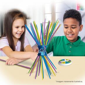 Puxa Espinho é um jogo diferente de tudo que já viu! Desafie seus amigos a puxar as varetas, sem derrubar o Stitch. Girando a roleta define a cor e quantidades de varetas a tirar, tire com muito cuidado e atenção. Ganha o Jogo, quem ficar até o final sem derrubar o Stitch.