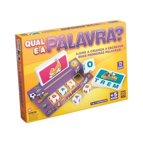 Jogo Qual É A Palavra - Aprenda e Divirta-se! O Jogo Qual É A Palavra é a maneira perfeita de aprender enquanto se diverte! Este jogo propõe várias formas de brincar e se divertir, acompanhando o ritmo da criança e ensinando-a a dar os primeiros passos no aprendizado da língua portuguesa. O objetivo do jogo é procurar as letras nos dados e encaixá-las no suporte para formar a palavra desejada. Com 72 palavras com imagens, este jogo oferece uma grande variedade de opções para a criança aprender e se divertir. A atividade mais simples propõe que a criança veja tanto a figura quanto a palavra para encaixar os dados. Para dificultar um pouco, depois de memorizar a palavra, a criança se baseia apenas na imagem. E, para tornar o jogo ainda mais emocionante, é possível organizar jogos com mais de um jogador, onde vence a criança que formar mais palavras corretamente. Este jogo é recomendado para crianças a partir de 5 anos e pode ser jogado por 1 ou mais participantes. Cada partida tem uma duração estimada de 50 minutos, garantindo horas de diversão e aprendizado. O Jogo Qual É A Palavra acompanha os seguintes componentes: 6 dados plásticos, 6 conjuntos de adesivos, 36 cartelas com palavras e ilustrações, 1 base de cartão e 1 manual de instruções. As dimensões da embalagem são 37,5 x 27,0 x 5,3 cm. Este jogo não requer alimentação externa e possui de 3 meses. Além disso, ele possui certificação do Inmetro, que garante a sua qualidade e segurança. O Jogo Qual É A Palavra é uma opção divertida e educativa para as crianças. Com ele, as crianças podem desenvolver habilidades linguísticas, memória, coordenação motora e muito mais. Não perca a oportunidade de proporcionar momentos de aprendizado e diversão para as crianças com este jogo incrível! Perguntas frequentes: 1. Qual a faixa etária recomendada para o jogo? O jogo é recomendado para crianças a partir de 5 anos. 2. Quantos jogadores podem participar? O jogo pode ser jogado por 1 ou mais participantes. 3. Quanto tempo dura uma partida? Uma partida tem uma duração estimada de 50 minutos. 4. O que acompanha o jogo? O jogo acompanha 6 dados plásticos, 6 conjuntos de adesivos, 36 cartelas com palavras e ilustrações, 1 base de cartão e 1 manual de instruções. 5. O jogo possui ? Sim, o jogo possui de 3 meses. 6. O jogo é seguro para crianças? Sim, o jogo possui certificação do Inmetro, garantindo a sua qualidade e segurança. Não perca tempo e adquira agora mesmo o Jogo Qual É A Palavra para proporcionar diversão e aprendizado para as crianças!