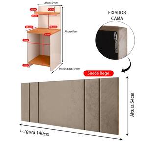 Jogo Quarto Completo 2 Mesas Cabeceira Pequena Mesinha Lateral Painel Suspenso Estofado Cama Box Casal 1,40 - Lojas RPM - Bege