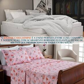 Jogo Queen Size Jasmine 400 Fios Premium Conforto Luxo Cor: ROSA Dê ao seu quarto o toque que ele merece O Jogo de Cama Jasmine 400 Fios Premium é sinônimo de conforto, elegância e qualidade que você sente ao primeiro toque.