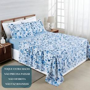 São 4 peças: 1 lençol de baixo com elástico, 1 lençol de cima e 2 fronhas com acabamento premium.