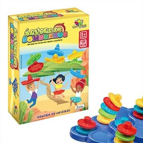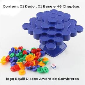 Inclui uma base em forma de árvore e vários discos coloridos que devem ser equilibrados no chapéu mexicano no topo da árvore. Ideal para crianças e adultos que gostam de jogos de habilidade e estratégia.