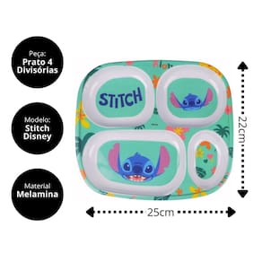 Jogo Refeição Infantil Melamina Stitch Disney 4 Peças