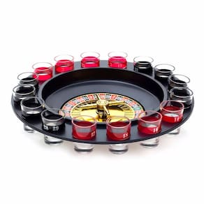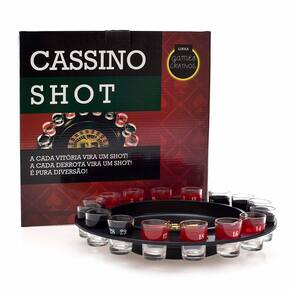 Jogo de roleta cassino com 16 copos shot 1 roleta de pvc resistente 16 copos shot de vidro com capacidade para 20 ml e 2 de aço. Medidas roleta: altura: 4,5 cm diâmetro: 30 cm embalagem : altura: 9 cm largura: 32 cm profundidade: 32 cm peso: 1,116 kg. Jogo de roleta emocionante com copos de shots para se divertir com sua família e amigos. Encha os copos com a bebida de sua preferência, rode a roleta jogando a bolinha em seguida, o número que cair corresponderá ao copo que o jogador deverá tomar.